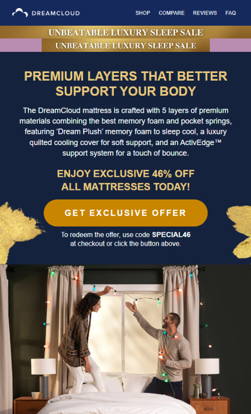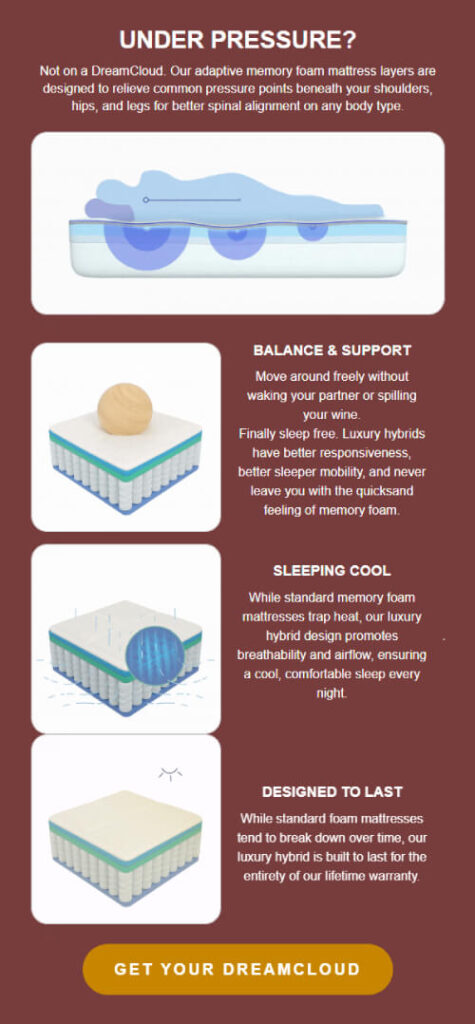 Dlatego w dzisiejszym artykule z serii Email Audyt biorę na tapet mail od Dream Cloud, angielskiej marki produkującej materace, łóżka i inne rzeczy do spania.