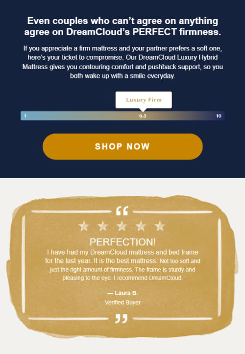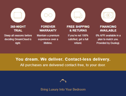 Od razu w komunikacji DreamCloud widać jak po części pozycjonują się na markę luksusową (albo przynajmniej na taką, która ma dać klientom w trakcie używania wrażenie luksusu).